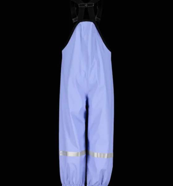 Regnbyxor för barn, gjorda i PU-material och med svetsade sömmar för en helt vattentät konstruktion. Byxorna är justerbara i midjan och har justerbara hängslen för en riktigt bra passform. De har även justerbara, elastiska band som träs under skorna eller stövlarna för att hålla byxbenen på plats och för att hindra vatten från att komma in. Plaggets ytbehandling är fri från miljöfarliga fluorkarboner. Byxorna kan lätt spolas av eller torkas rena med en trasa.