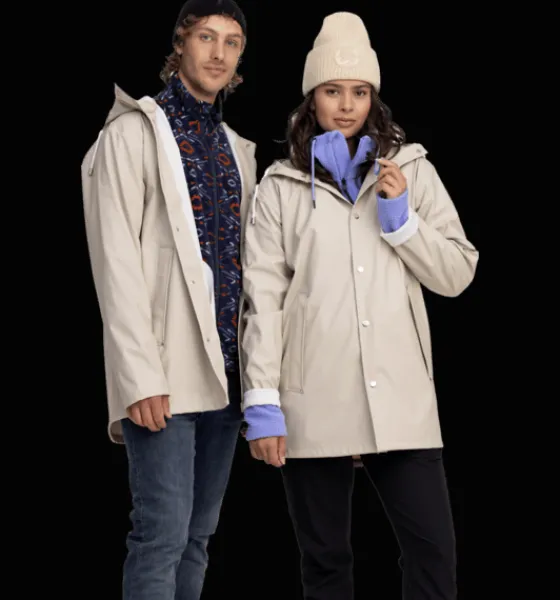 Regnjacka i PU-material. Den har vattentätt yttertyg, svetsade, vattentäta sömmar och mjukt innerfoder av återvunnet material. Jackan är också utrustad med två fickor samt med justerbar huva och justerbara ärmslut.