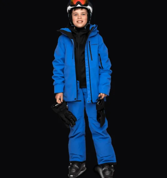 J Alpine Pant från Everest är vind- och vattentäta byxor för den aktiva och medvetna junioren i skidbacken. De har mycket bra andasfunktion, tejpade vattentäta sömmar, och är gjorda i ett mjukt och funktionellt material. Byxorna är tunt vadderade och har justerbar midja samt justerbara, elastiska hängslen som är avtagbara. De är utrustade med ventilationsdragkedjor på benen, smidiga att öppna upp när temperaturen stiger. Byxorna har också snölås i bensluten för att hålla snö och kyla ute. Bensluten är dessutom förstärkta med Cordura-material för extra slitstyrka. Knäna är förböjda för bättre rörlighet och byxorna har även flera fickor, alla med vattentät dragkedja. Plaggets ytbehandling är fri från miljöfarliga fluorkarboner.
