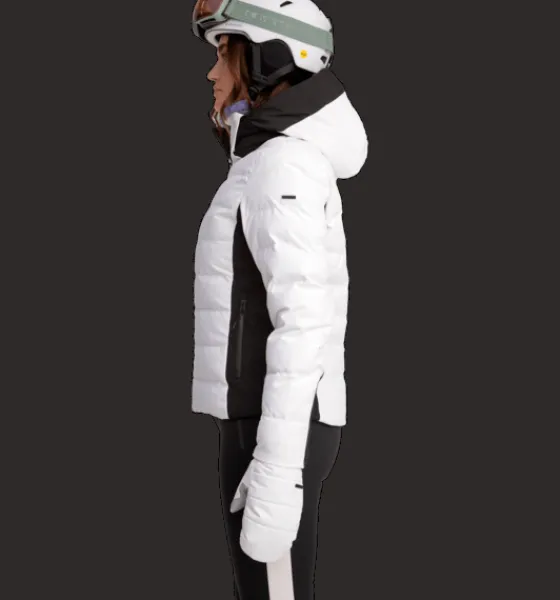 Skidjacka med fluffig, värmande Solar Ball-vaddering och med stretchiga sidopaneler så att du kan röra dig obehindrat i backen. Jackan har vind- och vattentätt yttertyg men har inte tejpade sömmar så se upp med för hård, långvarig nederbörd. Den har en avtagbar huva och högre innerkrage med fleece för en varmare känsla. Jackan har också dragkedja i ärmsluten för att bättre passa över skidhandskar och dragsko i nederkant för en personlig, skyddande passform. Dessutom har den snölås i både ärmslut och midja för att skydda mot snö och kalla vindar. Jackan har också flera praktiska fickor – innerficka, liftkortsficka och sidofickor. Plaggets ytbehandling är fri från miljöfarliga fluorkarboner.