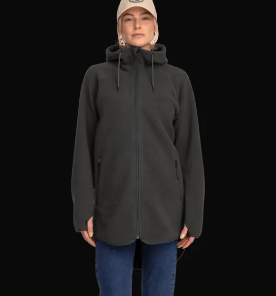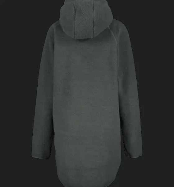 Funktionströja i mjuk och värmande pile. Den är gjord i längre modell och har justerbar, värmande huva, fickor med dragkedja och tumhål i ärmsluten för att skydda och värma händerna.