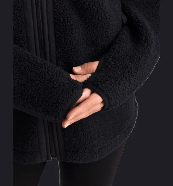 Funktionströja med utsida i värmande pile och insida i mjuk fleece. Den har fullängds dragkedja fram, detaljer i vävt material och ärmslut med tumhål. Tröjan är gjord i återvunnen polyester och har vävda detaljer av polyamid.