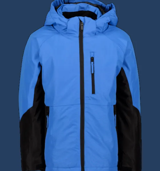 J Snow Jacket från Everest är en vind- och vattentät juniorjacka med bra andasfunktion och som passar bra att använda som vinterjacka till olika vinteraktiviteter utomhus. Den har en varm syntetvaddering av återvunnen polyester och yttertyg med tejpade sömmar för en helt vattentät konstruktion. Jackan har också avtagbar, justerbar huva och mjukt borstad trikå på insidan av kragen för en varmare känsla. Den är även försedd med en skyddande vindslå innanför dragkedjan fram och är justerbar i ärmslut och nederkant för bästa passform. Ärmsluten har dessutom elastiska innermuddar för att hålla vind och kyla ute. Plaggets ytbehandling är fri från PFAS.