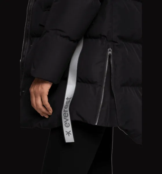 Warm Parka från Everest är en kanalsydd, puffig parka med värmande TCS Insuloft, en syntetvaddering i 100% återvunnen polyester med dunliknande egenskaper. Den har ett yttertyg som är vind- och vattentätt men har inte tejpade sömmar så se upp med för hård, långvarig nederbörd. Jackan har en skönt värmande huva och är justerbar i midjan så att du kan variera din stil – antingen en rakare eller mera timglasformad siluett. Jackan är också försedd med tvåvägs dragkedja fram och med sprund med dragkedja nertill i sidorna, perfekt att öppna upp för en vidare passform så att du kan röra dig lättare om du är ute på en snabb promenad eller kliver i och ur bilen. Det finns också en skyddande vindslå både framför och innanför dragkedjan fram. Den hindrar vind och kyla från att tränga igenom samtidigt som den skyddar plaggen under jackan från att fastna i dragkedjan. Jackan har även elastiska innermuddar i ärmsluten samt flera praktiska fickor. Sidofickorna har mjuk borstad trikå på insidan för en varmare känsla. Inuti ena fickan finns dessutom ett band med reflekterande tryck, smidigt att fälla ut vid behov. Parkan är 3-i-1 kompatibel. Ett fäste bak i nacken gör att du kan koppla ihop en tunnare lättviktsjacka eller väst under den här jackan. På så sätt kan du skapa kombinationer av plagg som du kan använda under en längre del av säsongen.