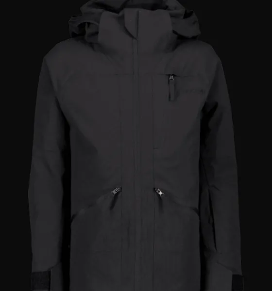 J Lex Softshell Jacket från Everest är en vind- och vattentät juniorjacka med bra andasfunktion och som passar bra att använda som skidjacka eller som vinterjacka till andra aktiviteter utomhus. Jackan är varmt vadderad, gjord i ett mjukt material och har tejpade vattentäta sömmar. Den har avtagbar justerbar huva och extra hög krage för att skydda mot vind och kyla. Kragen är mjukt borstad på insidan för en varmare känsla. Jackan är justerbar i ärmslut och nederkant och i ärmsluten finns dessutom en elastisk innermudd för att hålla vind och kyla ute. Den är också utrustad med flera fickor, bland annat en liftkortsficka på vänster ärm. Plaggets vattenavvisande ytbehandling är fri från PFAS och innerfodret är färgat med energibesparande Solution Dye-teknik.
