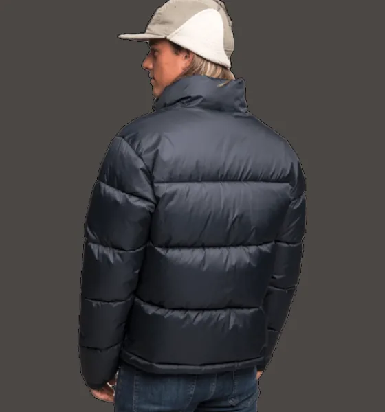 Kanalsydd jacka med puffig, värmande vaddering av återvunnet material. Passar bra att använda både som en höstjacka och som en vinterjacka. Jackans yttertyg är av ripstop-material, vilket gör den extra slitstark. Den har två ytterfickor med dragkedja och med mjukt innerfoder som ger en varm och skön känsla om du behöver värma händerna. Inuti fickorna finns dessutom ett fastsytt band med reflekterande tryck, smidigt att fälla ut vid behov. Jackan är 3-i-1 kompatibel. Ett fäste bak i nacken gör att du kan koppla ihop en tunnare lättviktsjacka med den här jackan. På så sätt kan du skapa kombinationer av plagg som du kan använda under en längre del av säsongen. Plaggets vattenavvisande ytbehandling är fri från PFAS.