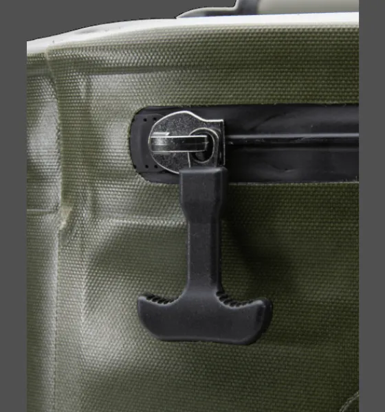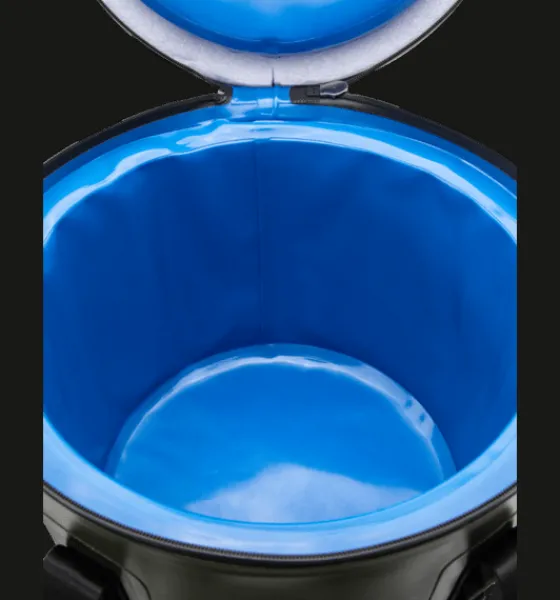 Stadig, cylinderformad kylväska i nylon med gummerad yta. Den har ett rymligt fack med dragkedja, bärhandtag och en justerbar axelrem.