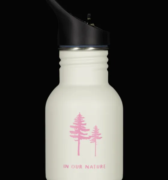 Vattenflaska tillverkad i rostfritt stål. Flaskan är försedd med praktisk ögla som kan användas för fastsättning med exempelvis en karbinhake eller bara för att bära den med ett finger.