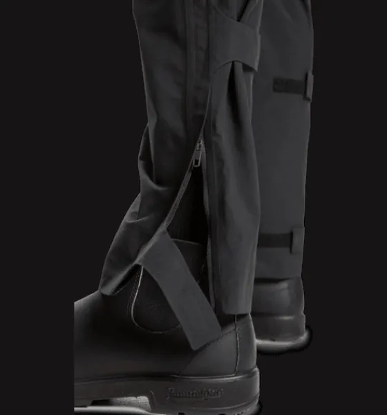 Regnbyxor med TCS Water som gör dem vind- och vattentäta upp till 10 000 mm. Byxorna har bra andasfunktion och är justerbara i midjan och i bensluten. De är också försedda med två framfickor med dragkedja.