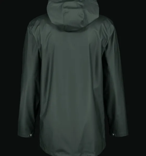 Regnjacka i PU-material. Den har vattentätt yttertyg, svetsade, vattentäta sömmar och mjukt innerfoder av återvunnet material. Jackan är också utrustad med två fickor samt med justerbar huva och justerbara ärmslut.