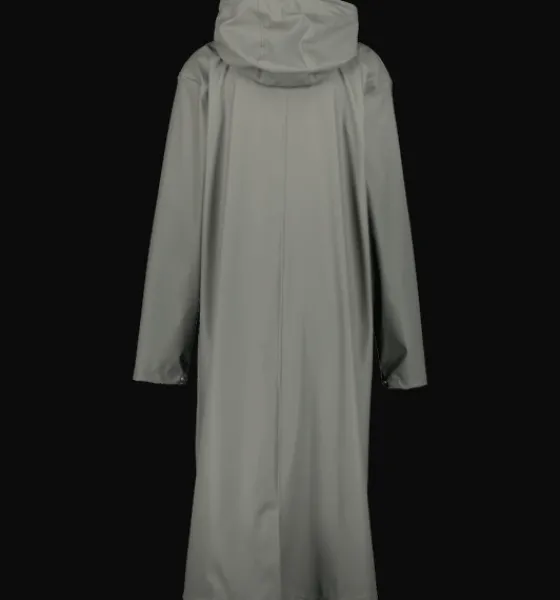 Regnkappa i PU-material. Den har vattentätt yttertyg, svetsade, vattentäta sömmar och mjukt innerfoder av återvunnet material. Kappan är också utrustad med två sidofickor samt med justerbar huva och justerbara ärmslut.