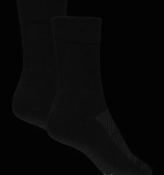 Tvåpack funktionella strumpor i ullmix. Strumporna är förstärkta vid tå och häl för ökad komfort och bättre slitstyrka. De har en elastisk stickning runt ankel och hålfot för skön passform, och har platt tåsöm för att minska risken för skav och irritation. Strumporna är också utformade för att ge bra ventilation och fukttransport. Ullen i strumporna har många funktioner. Den värmer dig när du är kall och gör att du känner dig svalare om fötterna när du själv är varm. Ull motverkar också dålig lukt och absorberar vätska bra vilket ger en torrare känsla om du blir blöt om fötterna.