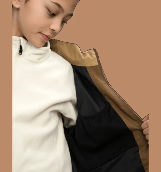 Vind- och vattentät vårjacka för junior, passar bra att använda både som en regnjacka och som en funktionsjacka. Den har vind- och vattentätt yttertyg, heltejpade vattentäta sömmar och mycket bra andasfunktion. Jackan har också mjukt innerfoder men är ovadderad. Huvan är avtagbar och justerbar och på insidan av kragen finns ett mjukt foder för en varmare känsla. Jackan är även försedd med en reflekterande detalj nertill på ryggen och med en skyddande vindslå innanför dragkedjan fram för att hindra vind och kyla att tränga igenom. Jackans ytbehandling är fri från miljöfarliga fluorkarboner och innerfodret är färgat med energibesparande Solution Dye-teknik.