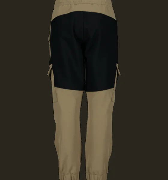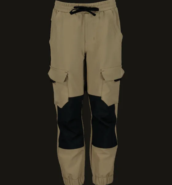 Friluftsbyxor för barn, perfekta för utelek. Byxorna är gjorda i återvunnen polyester och har en vattenavvisande ytbehandling, praktiska fickor med ficklock och fyrvägsstretch för extra rörelsefrihet. De har resår i midja och benslut och midjan har även en justerbar dragsko för att byxorna ska sitta riktigt bra. Dessutom är rumpa och knän förstärkta med ett slitstarkt och vattentåligt material för att bättre stå emot tuff lek. Plagget är fritt från miljöfarliga fluorkarboner.