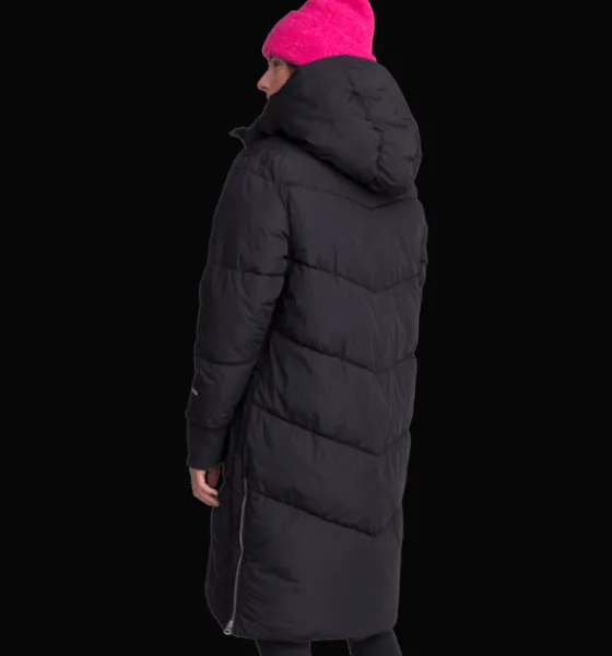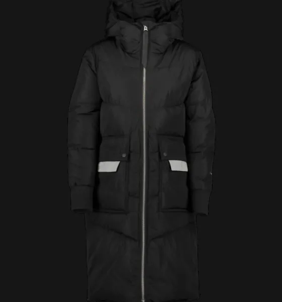 Lång kanalsydd kappa med värmande, dunliknande syntetvaddering av återvunnet material. Den har tvåvägs dragkedja fram och på insidan finns en elastisk bärrem som gör att jackan kan hängas på ryggen som en ryggsäck. Perfekt när det blir för varmt att ha den på sig, om du till exempel är på stan och växlar mellan att vara inne och ute. Bärremmen är avtagbar och kan kopplas bort. Jackan har också sprund nertill i sidorna som kan öppnas upp med dragkedja. Smidigt om du vill öka vidden på jackan så att du kan röra dig lättare om du är ute på en snabb promenad eller kliver i och ur bilen. Inuti sprundet sitter en kil i reflekterande material. Jackan har dessutom praktiska framfickor som har öppningar både i sidorna och upptill. Innanför ficklocket sitter en fastsydd reflekterande detalj som du enkelt kan fälla ut vid behov. Fickorna har också ett mjukt innerfoder i borstad trikå, för en varm och skön känsla när du värmer händerna. Jackan är 3-i-1 kompatibel. Ett fäste bak i nacken gör att du kan koppla ihop en tunnare lättviktsjacka med den här höst- och vinterjackan. På så sätt kan du skapa kombinationer av plagg som du kan använda under en längre del av säsongen.