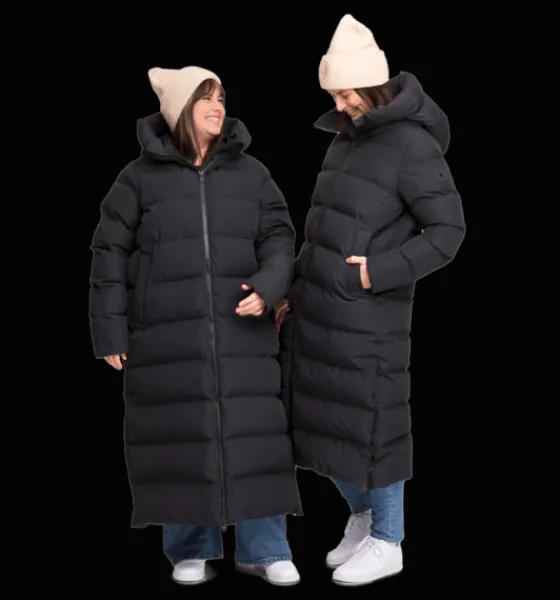 Juneau Coat från Everest är en lång, kanalsydd kappa med TCS Insuloft – en syntetvaddering i 100% återvunnen polyester med dunliknande egenskaper. Den har ett yttertyg som är vind- och vattentätt men har inte tejpade sömmar så se upp med för hård, långvarig nederbörd. Jackan har en något lösare passform som gör att du får plats med en tjockare tröja under när det är riktigt kallt ute. Den har tvåvägs dragkedja framtill och sprund nertill i sidorna som öppnas och stängs med tryckknappar. Perfekt om du vill öka vidden på jackan så att du kan röra dig lättare om du är ute på en snabb promenad eller kliver i och ur bilen. Den är också försedd med en stor skön huva och med framfickor med mjukt innerfoder för en varmare känsla. Inuti fickorna finns dessutom ett band med reflekterande tryck, smidigt att fälla ut vid behov. Kappan är 3-i-1 kompatibel. Ett fäste bak i nacken gör att du kan koppla ihop en tunnare lättviktsjacka eller väst under den här höst- och vinterjackan. På så sätt kan du skapa kombinationer av plagg som du kan använda under en längre del av säsongen. Plaggets vattenavvisande ytbehandling är fri från PFAS.