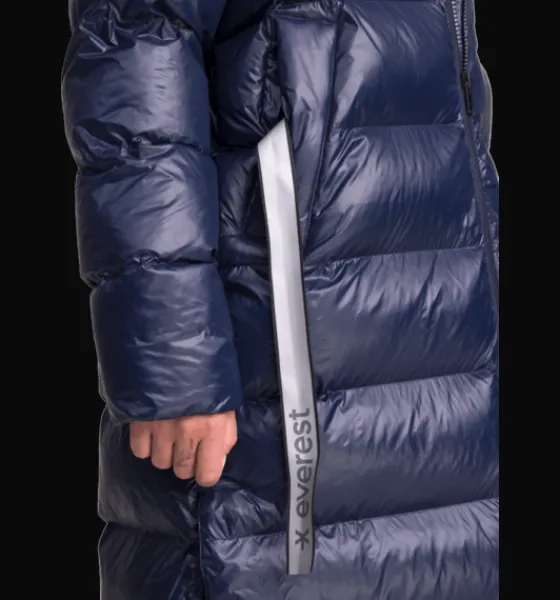 Juneau Coat från Everest är en lång, kanalsydd kappa med TCS Insuloft – en syntetvaddering i 100% återvunnen polyester med dunliknande egenskaper. Den har ett yttertyg som är vind- och vattentätt men har inte tejpade sömmar så se upp med för hård, långvarig nederbörd. Jackan har en något lösare passform som gör att du får plats med en tjockare tröja under när det är riktigt kallt ute. Den har tvåvägs dragkedja framtill och sprund nertill i sidorna som öppnas och stängs med tryckknappar. Perfekt om du vill öka vidden på jackan så att du kan röra dig lättare om du är ute på en snabb promenad eller kliver i och ur bilen. Den är också försedd med en stor skön huva och med framfickor med mjukt innerfoder för en varmare känsla. Inuti fickorna finns dessutom ett band med reflekterande tryck, smidigt att fälla ut vid behov. Kappan är 3-i-1 kompatibel. Ett fäste bak i nacken gör att du kan koppla ihop en tunnare lättviktsjacka eller väst under den här höst- och vinterjackan. På så sätt kan du skapa kombinationer av plagg som du kan använda under en längre del av säsongen. Plaggets vattenavvisande ytbehandling är fri från PFAS.