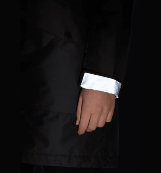 Vind- och vattentät parka i något längre modell. Med lätt vaddering i återvunnen polyester, dragsko i midjan och huva med justering både fram och bak för en passform som sluter tätt och stänger ute vind och vatten. Jackan har ett mjukt foder framtill på insidan av kragen som värmer lite extra och ger en mjuk och skön känsla. Den har en skyddande vindslå framför dragkedjan fram, som stängs med tryckknappar och som hindrar vind och kyla att komma in. Även innanför dragkedjan finns en vindslå, som håller vind och kyla ute och som skyddar plaggen under från att fastna i dragkedjan. Ärmsluten är justerbara med knappstängning och har även en praktisk utfällbar detalj i reflekterande material. Jackan har dessutom flera fickor — två bröstfickor med dragkedja, en innerficka i mesh samt två midjefickor med ficklock och mjukt innerfoder. Jackan är 3-i-1 kompatibel. Ett fäste bak i nacken gör att du kan koppla ihop en tunnare lättviktsjacka med den här jackan. På så sätt kan du skapa kombinationer av plagg som du kan använda under en längre del av säsongen. Plagget är fritt från miljöfarliga fluorkarboner och har innerfoder färgat med energibesparande Solution Dye-teknik.