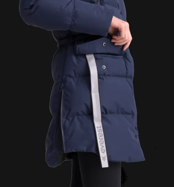 Warm Parka från Everest är en kanalsydd, puffig parka med värmande TCS Insuloft, en syntetvaddering i 100% återvunnen polyester med dunliknande egenskaper. Den har ett yttertyg som är vind- och vattentätt men har inte tejpade sömmar så se upp med för hård, långvarig nederbörd. Jackan har en skönt värmande huva och är justerbar i midjan så att du kan variera din stil – antingen en rakare eller mera timglasformad siluett. Jackan är också försedd med tvåvägs dragkedja fram och med sprund med dragkedja nertill i sidorna, perfekt att öppna upp för en vidare passform så att du kan röra dig lättare om du är ute på en snabb promenad eller kliver i och ur bilen. Det finns också en skyddande vindslå både framför och innanför dragkedjan fram. Den hindrar vind och kyla från att tränga igenom samtidigt som den skyddar plaggen under jackan från att fastna i dragkedjan. Jackan har även elastiska innermuddar i ärmsluten samt flera praktiska fickor. Sidofickorna har mjuk borstad trikå på insidan för en varmare känsla. Inuti ena fickan finns dessutom ett band med reflekterande tryck, smidigt att fälla ut vid behov. Parkan är 3-i-1 kompatibel. Ett fäste bak i nacken gör att du kan koppla ihop en tunnare lättviktsjacka eller väst under den här jackan. På så sätt kan du skapa kombinationer av plagg som du kan använda under en längre del av säsongen.
