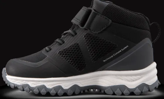 Vattentäta vandringsskor/sneakers i mid-modell. Skorna har en ovandel i PU och polyester som även har ett vattentätt membran för att hålla fötterna torra och bekväma. Kardborrerem tillsammans med elastiska skosnören gör skorna lätta att ta på och av. De är också försedda med en löstagbar, stötdämpande innersula för bekväma steg och med en slittålig mellan- och yttersula i TPR.